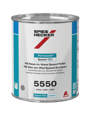 L’apprêt mouillé-sur-mouillé HS Speed 5550 Spies Hecker est conçu pour accélérer fortement le process de peinture en carrosserie. Grâce à sa technologie brevetée Axalta, il offre un temps de désolvatation ultra-rapide de seulement 5 minutes, permettant un enchaînement immédiat des étapes.